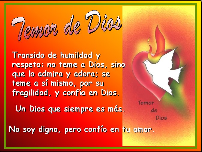 -Temor de Dios: nos induce a huir de las ocasiones de pecado para elegir siempre agradar a Dios.